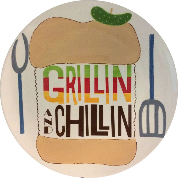 Our first box is this Grillin and Chillin 12in charger. Perfect for Father's day or a family grill platter for those summer barbecues.